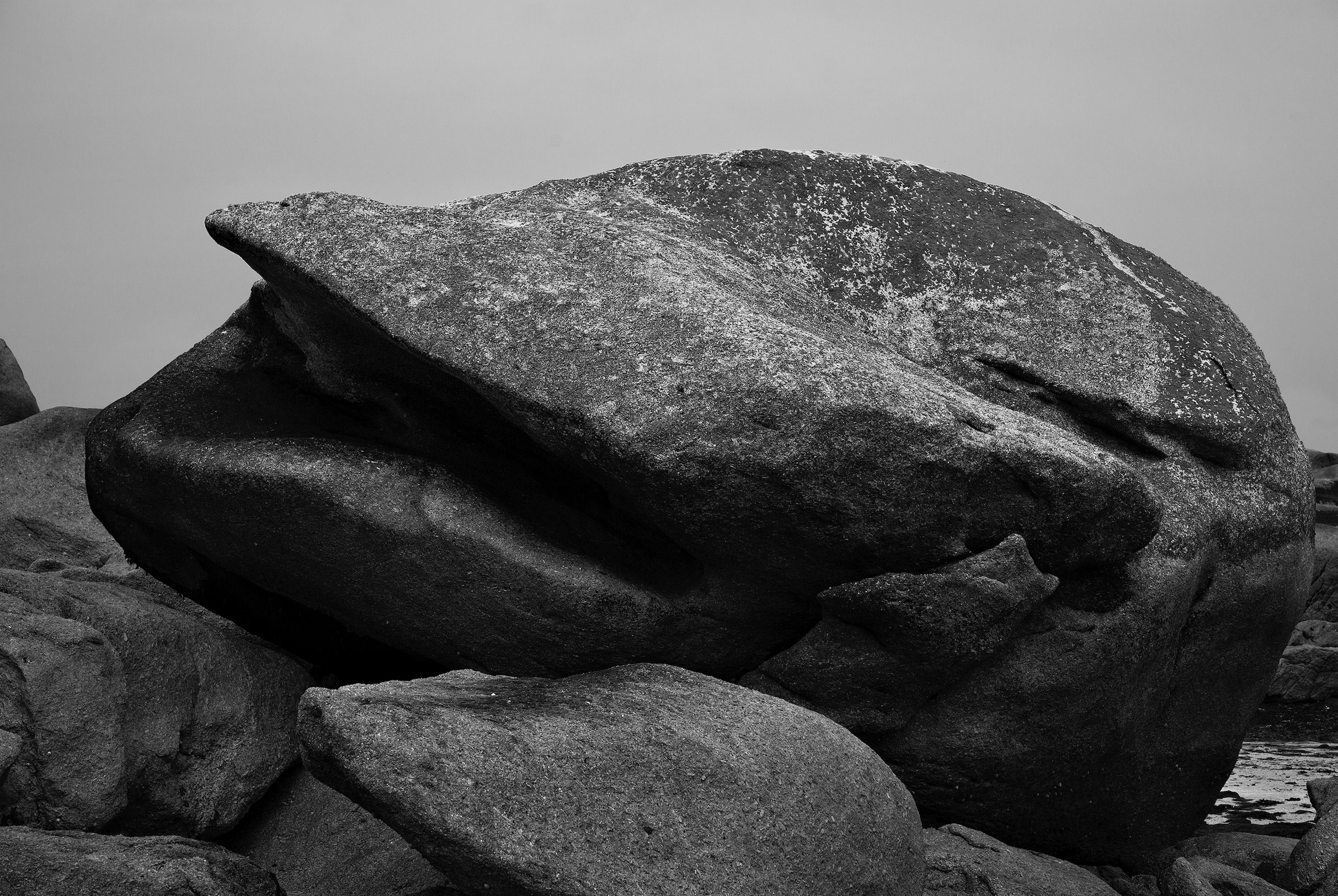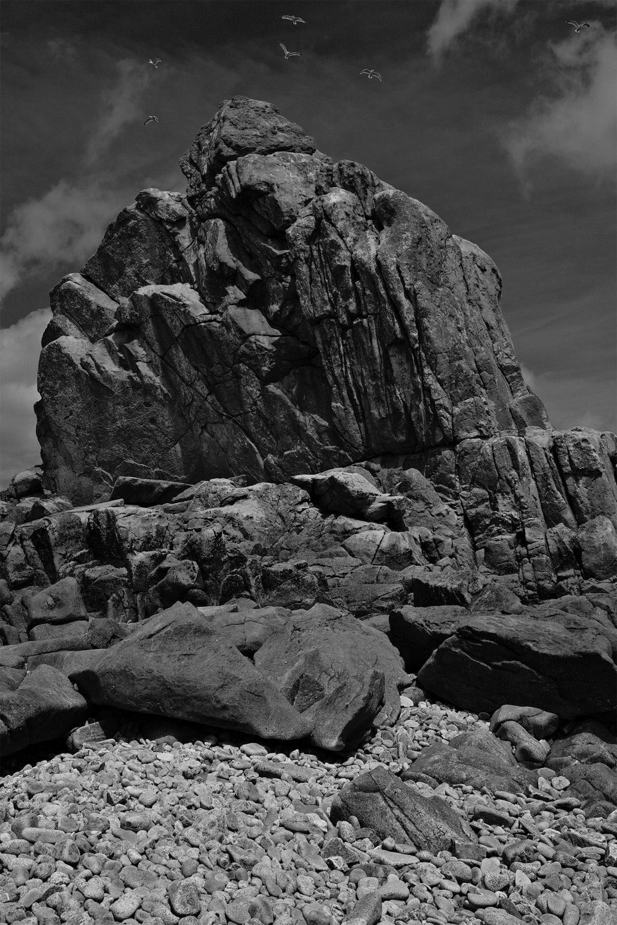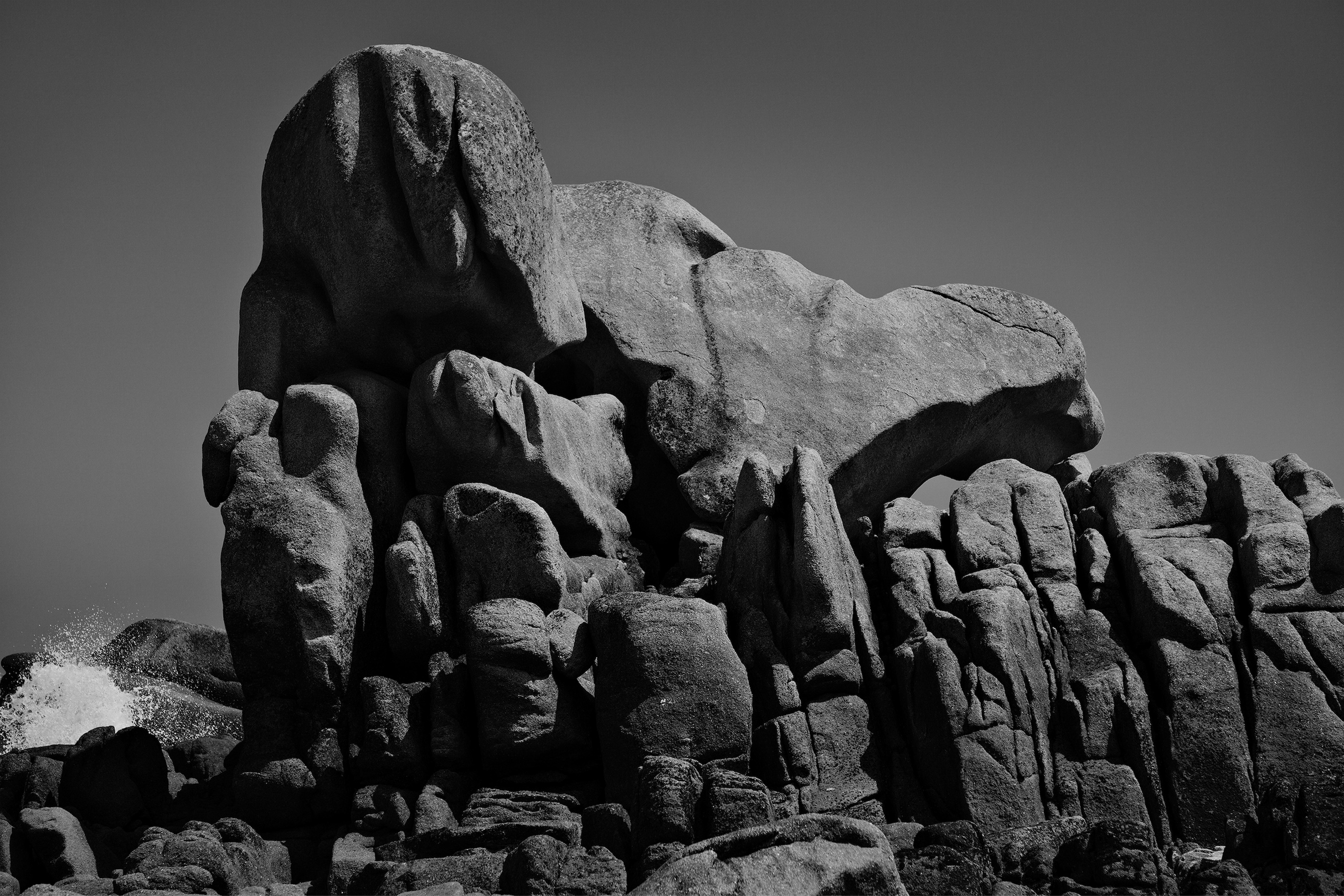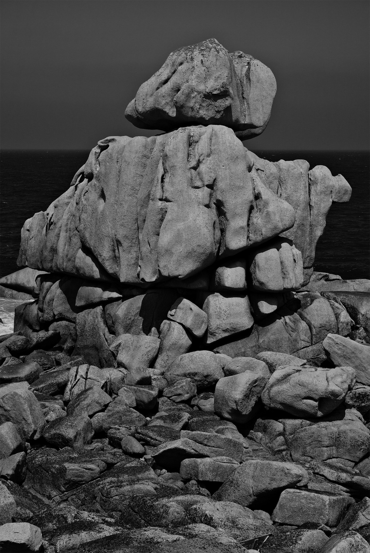 in düsteren Steilküsten und gewaltigen, haushoch durcheinander geworfenen Granitbrocken.