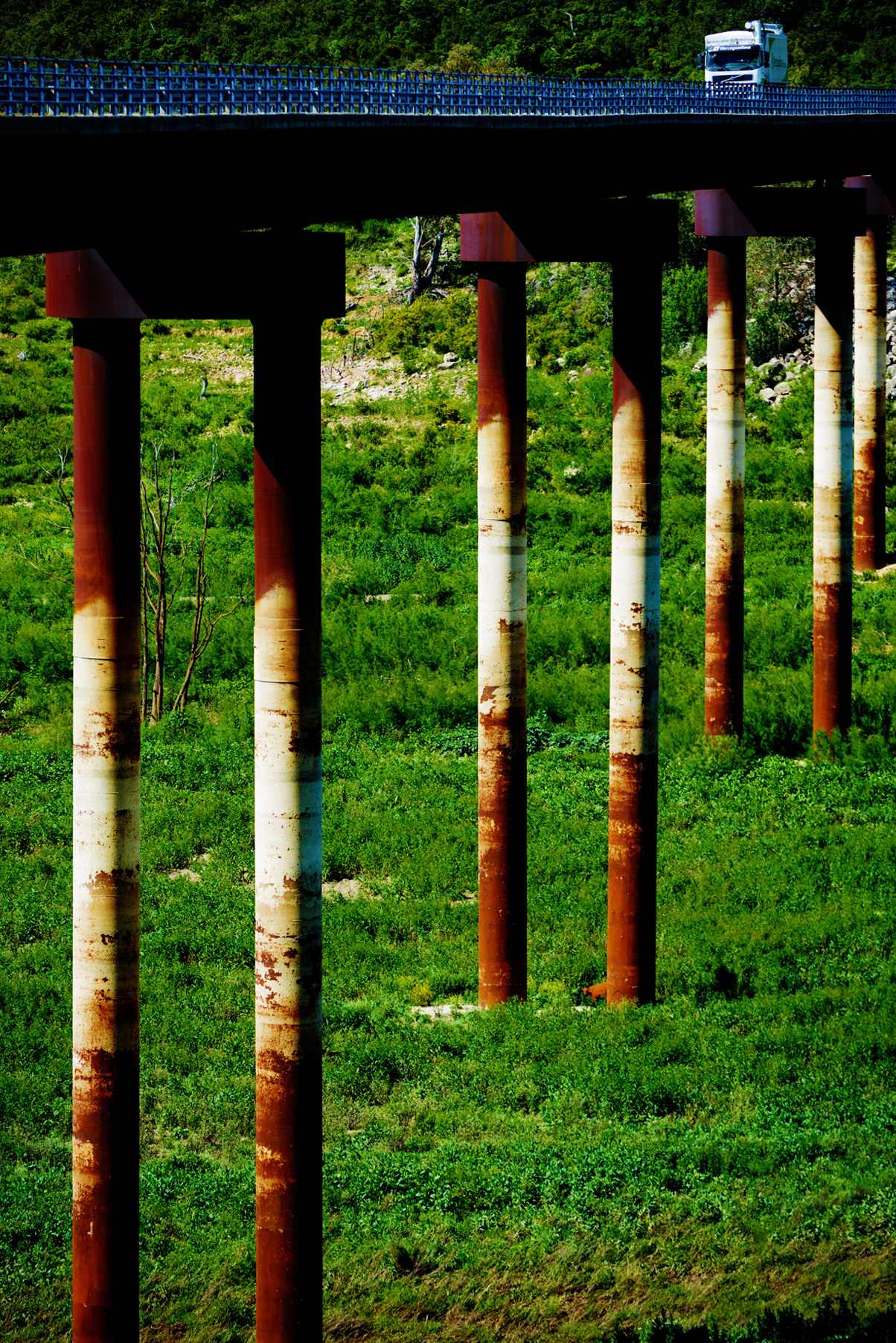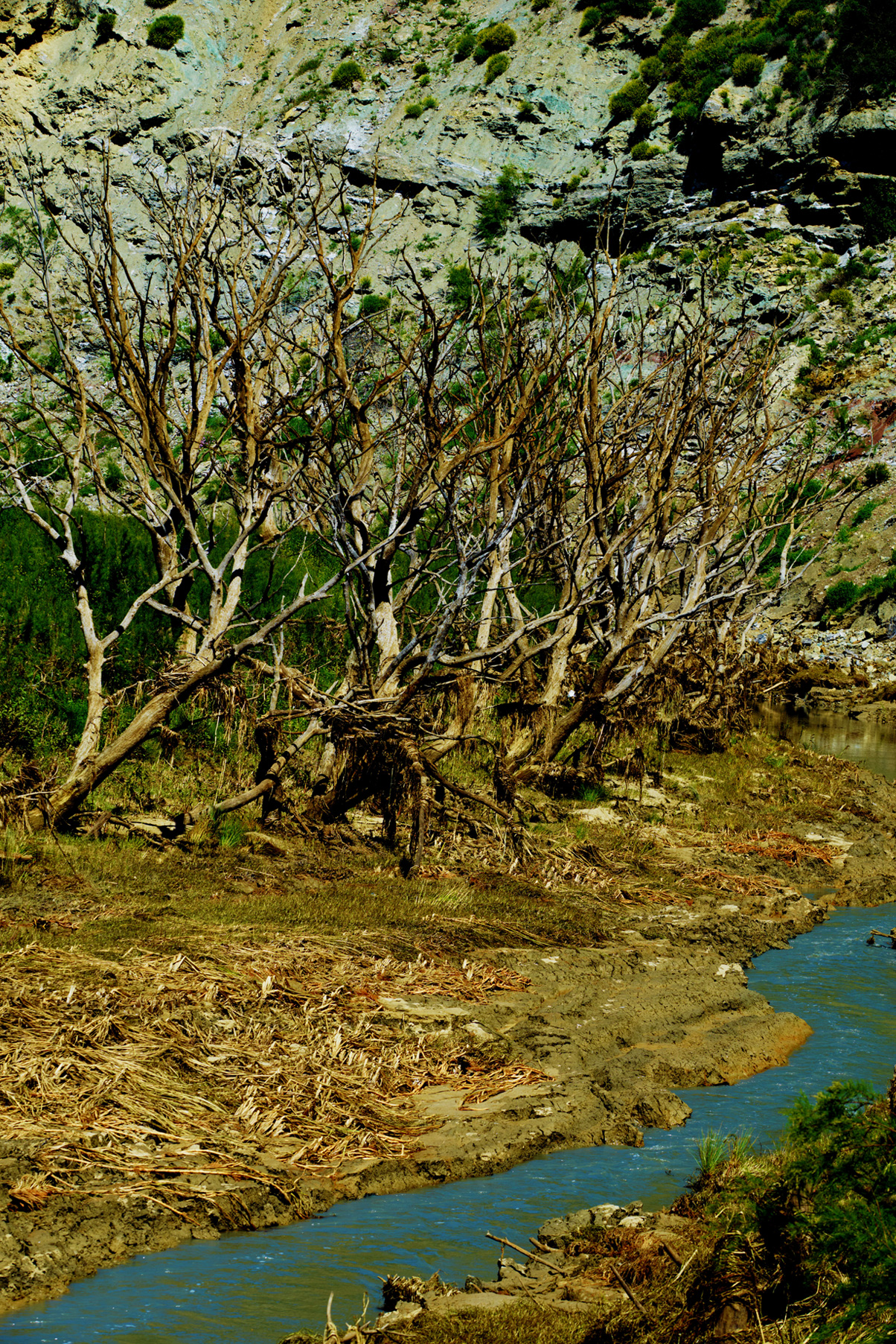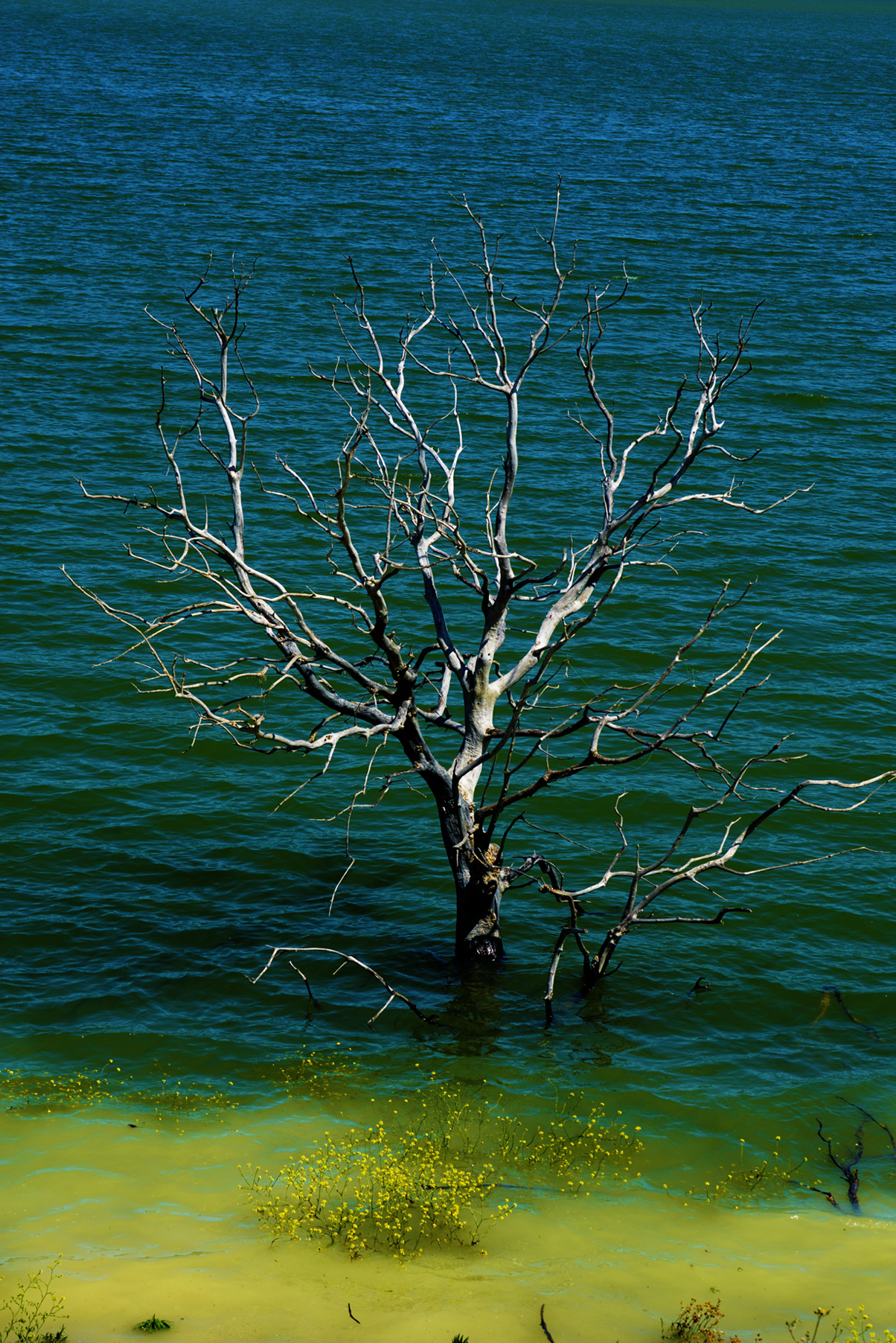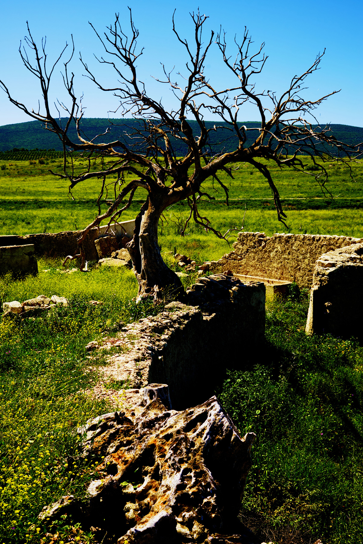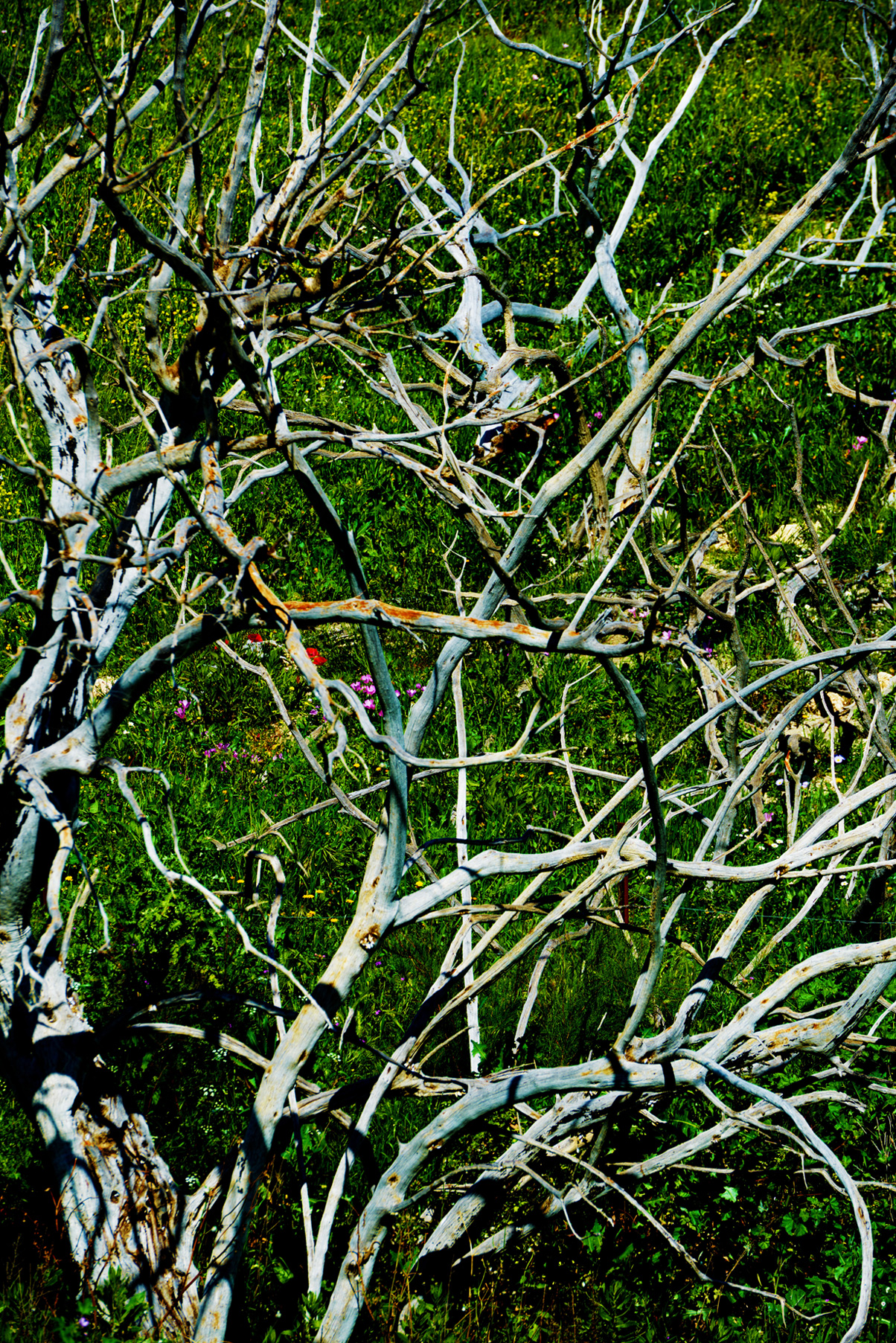 Wir fotografierten am GUADALCACIN, dem zweitgrößten Stausee Andalusiens, der vor dreißig Jahren an manchen Stellen an die hundert Meter tief war. Heute ist sein Wasserstand auf ein Minimum gefallen. Bäume, Dörfer, Straßen und Brücken die vor Jahrzehnten in den Fluten versanken, sind wie Mahnmale aus den Tiefen des Sees auferstanden. Jedes Frühjahr ermöglicht geringer Niederschlag der Pflanzenwelt sich auf dem ehemaligen Seegrund in grün und bunter Blütenpracht zu zeigen.